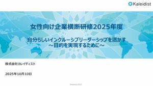 2025年9月5日、「カレイディストニューズレターvol.6」を発行・配信いたしました。今回の「DEIトピック考察」は、弊社代表塚原がモデレーターを務めた大阪万博「Women Empowerment Summit 202 […]